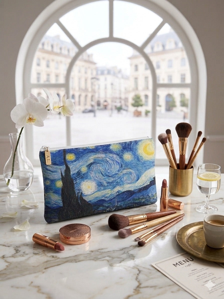 Elegante Maxi-pochette multifunzione dal design artistico, perfetta per organizzare cosmetici, pennelli e accessori, unisce praticità e stile in un unico prodotto.